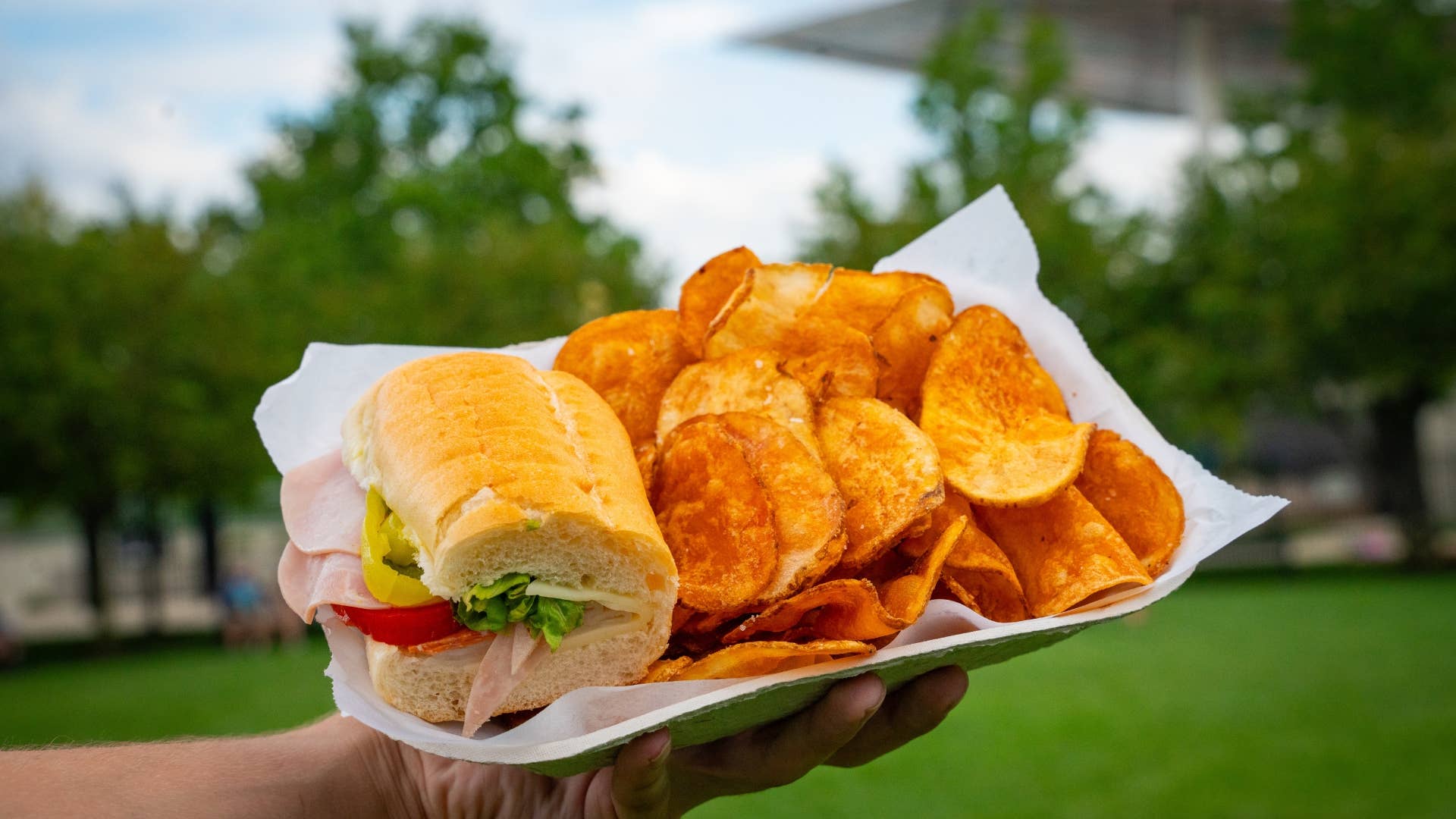 Delicious Italian Deli Sandwich with house chips that will make it easy to eat on the go as you head to your seats.